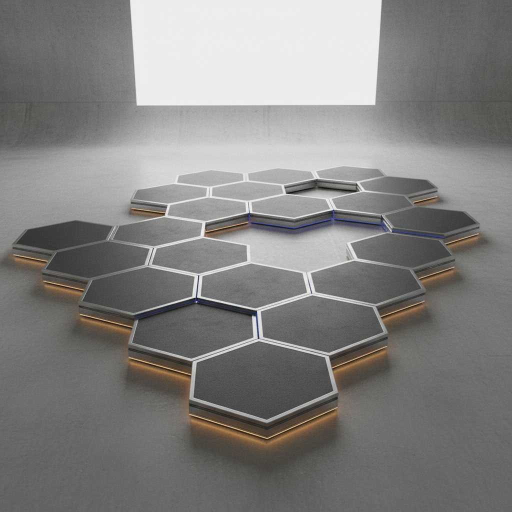 Tarima modular para eventos con 60 M2 de superficie. Ideal para escenarios, presentaciones y ceremonias.